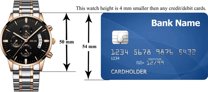 Elevate your style with the Alix 2309 Luxury Chronograph, a bold and elegant timepiece crafted for men who appreciate refined detailing and modern design. This analog watch features a striking Black and rose gold round dial paired with a dual-tone silver and rose gold metal strap, making it ideal for weddings, parties, business meetings, or everyday wear.