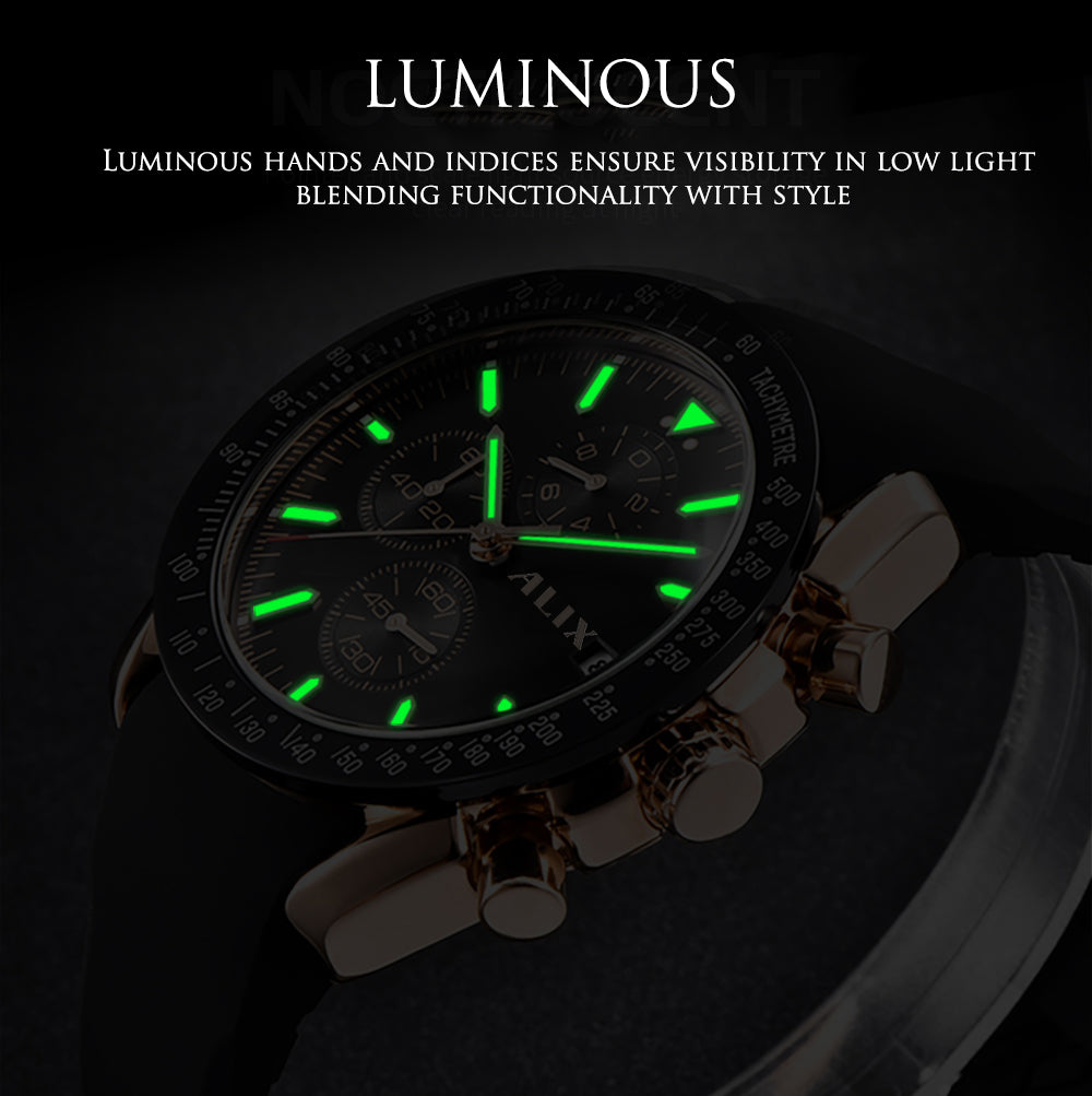 With chronograph functions, a date aperture, and a stopwatch, it’s built for performance. The quartz movement ensures precision, while the 30 m water resistance provides daily protection. Housed in a signature ALIX box, it's ideal for gifting or personal use.
