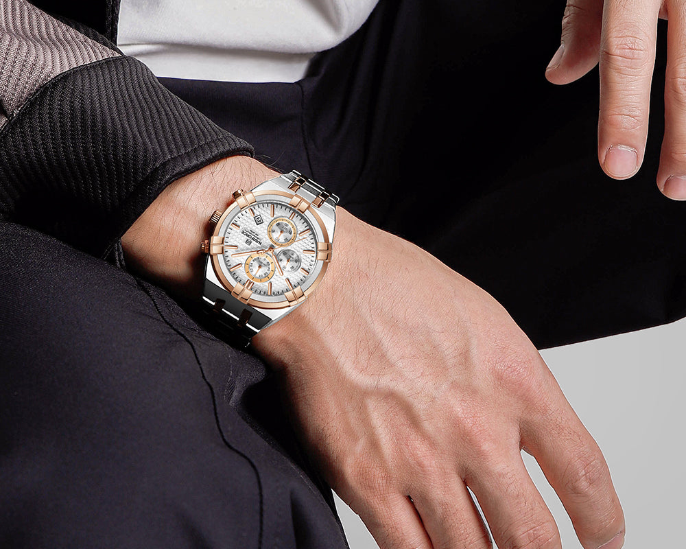 Men's Chronograph Quartz Watch | Stainless Steel Strap | 30M Water Resistant | Luminous Display